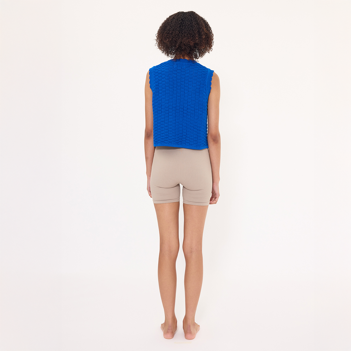 The Ruth Top by Phàrlain is knitted from soft mercerised cotton with an all‑over textured reverse‑square pattern. A lace‑inspired stitch trims the neckline and shoulders, giving this easy‑wear piece a feminine edge.