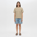 The Tai Flocking Logo Tee in Sepia by Camilla & Marc features a soft cotton body with a flocked logo design that adds subtle texture and depth. The oyster shade keeps the palette neutral and elevated, ideal for minimal wardrobes.
