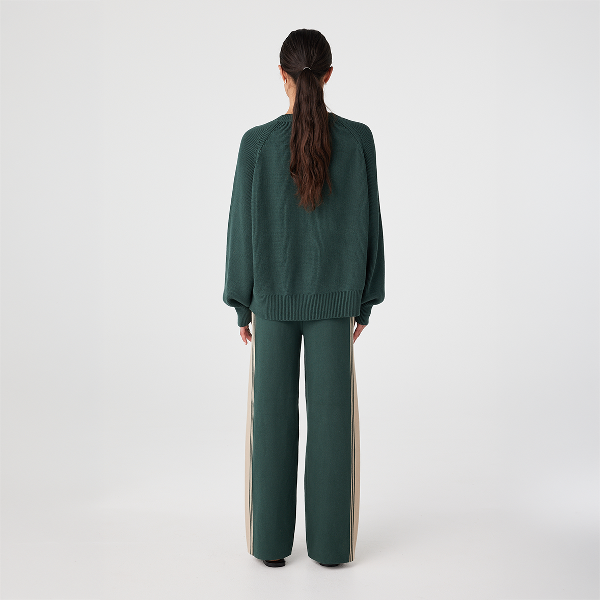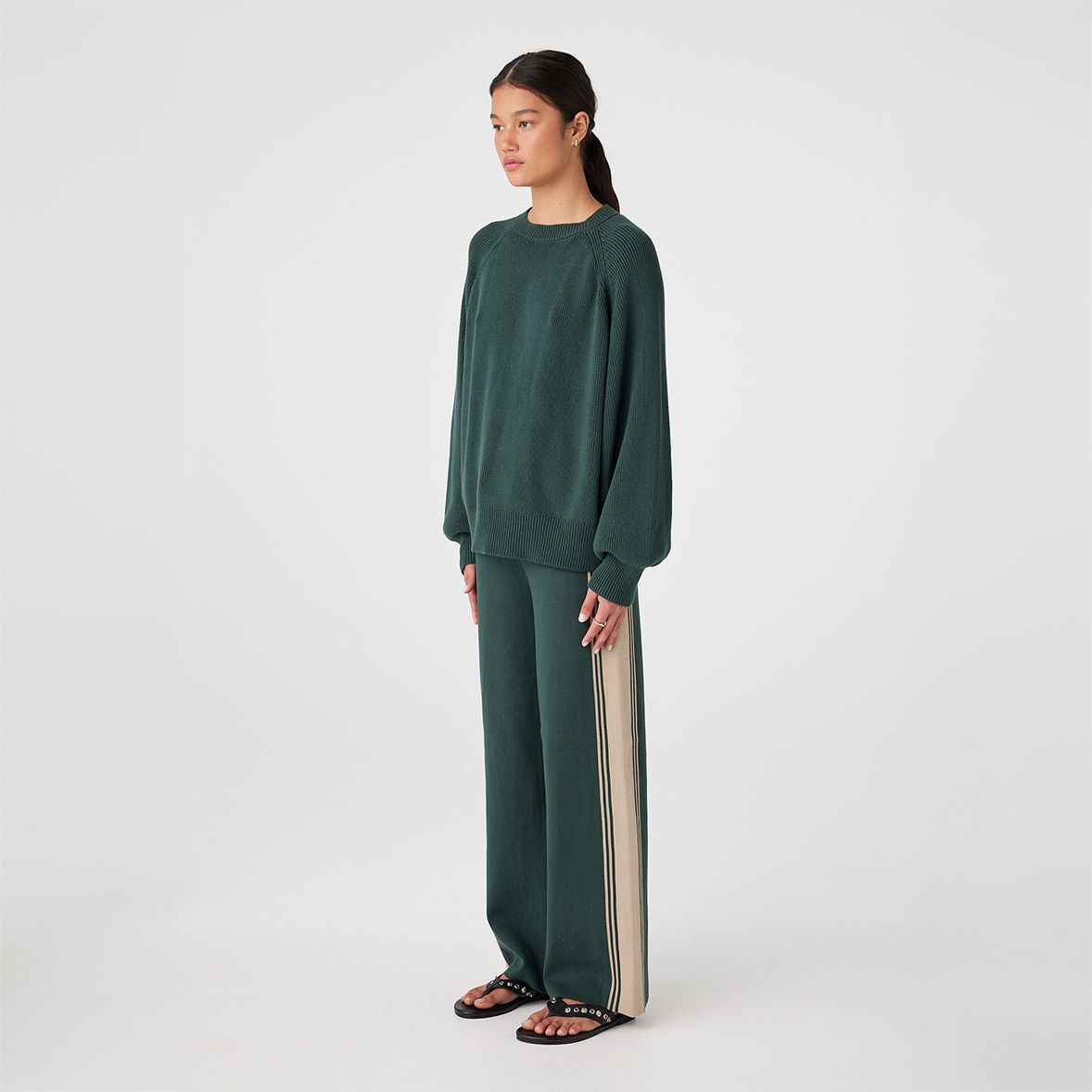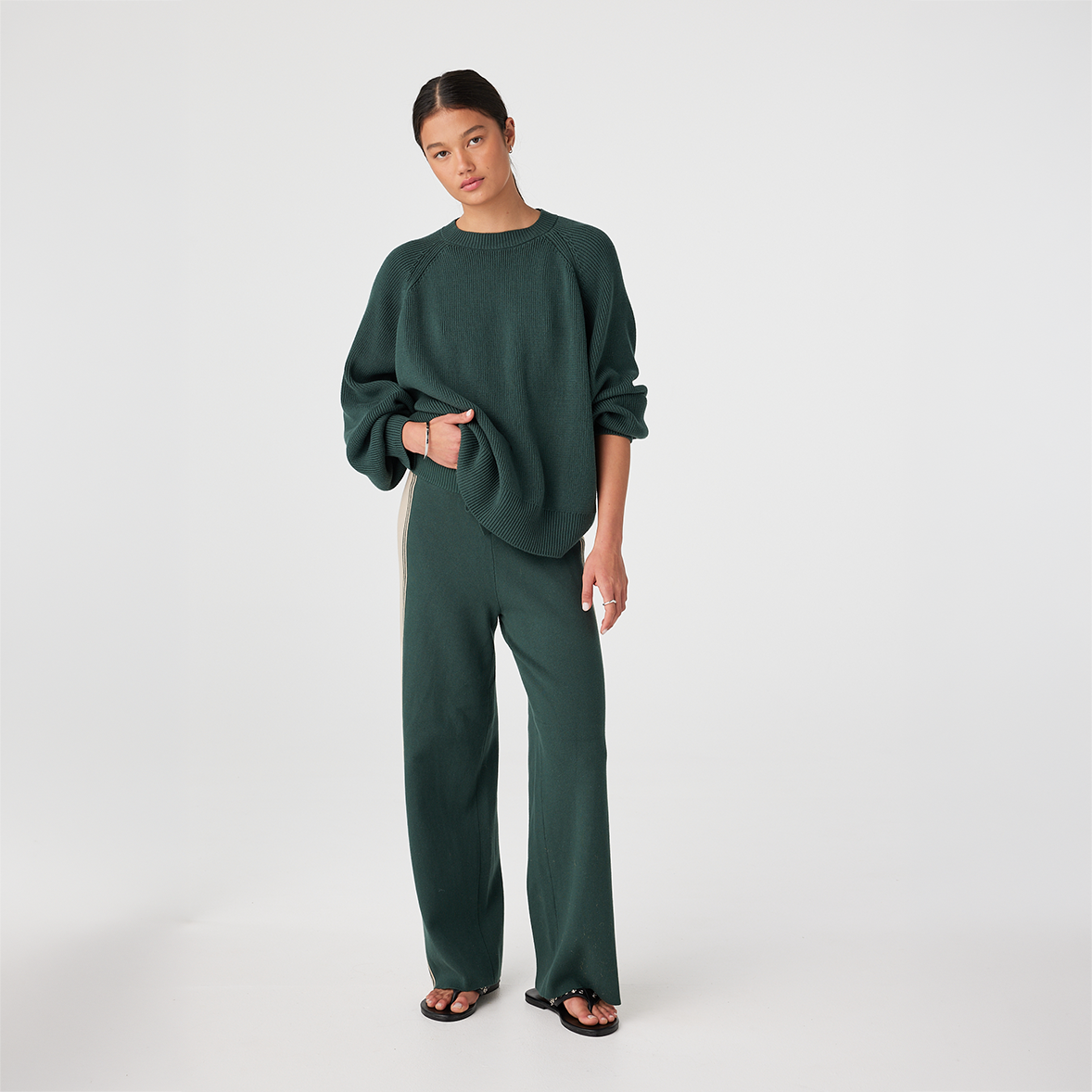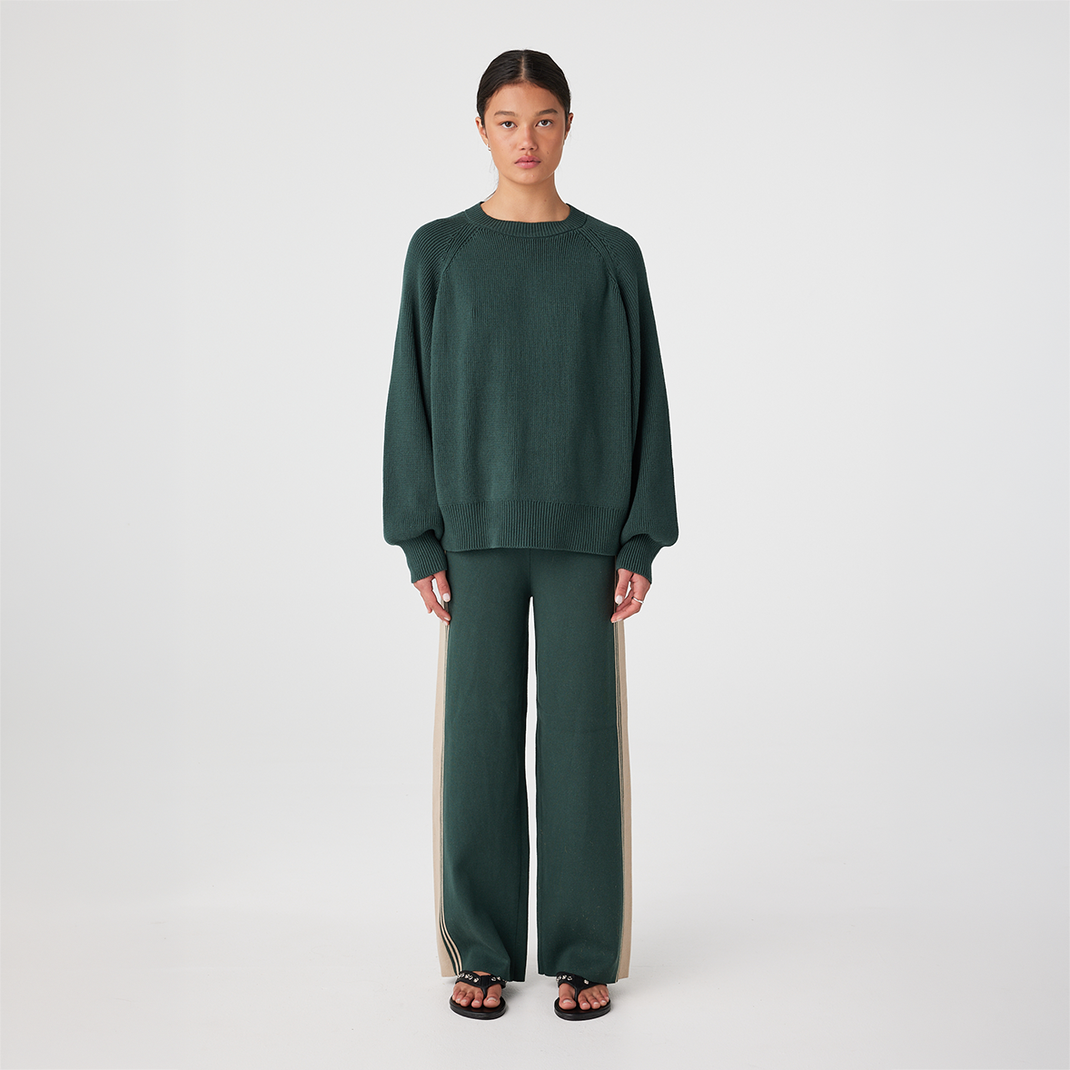 The Aubrey Sweater is crafted from organic cotton with elastane to help maintain its shape. The ribbed knit structure provides texture while remaining breathable.