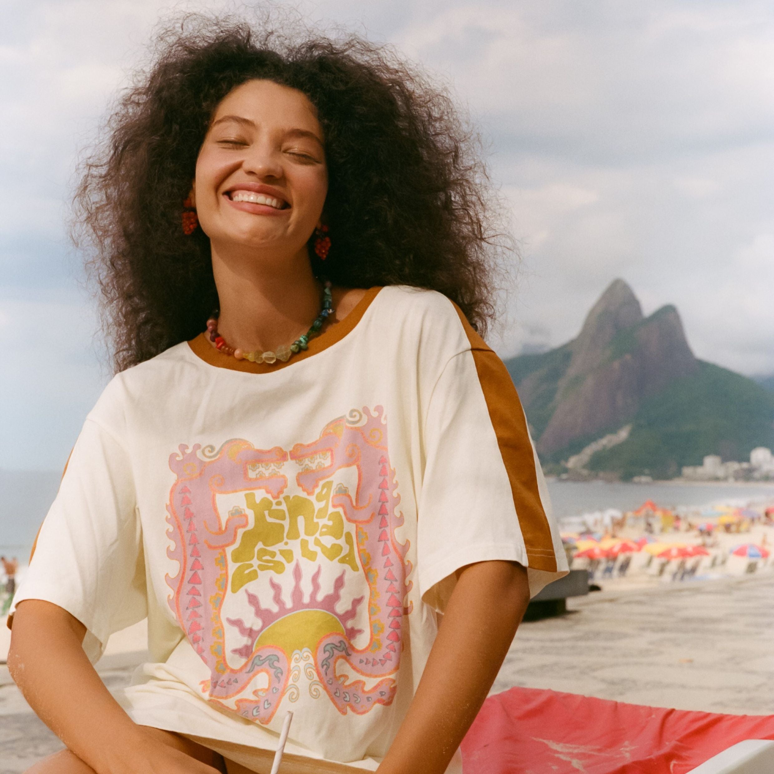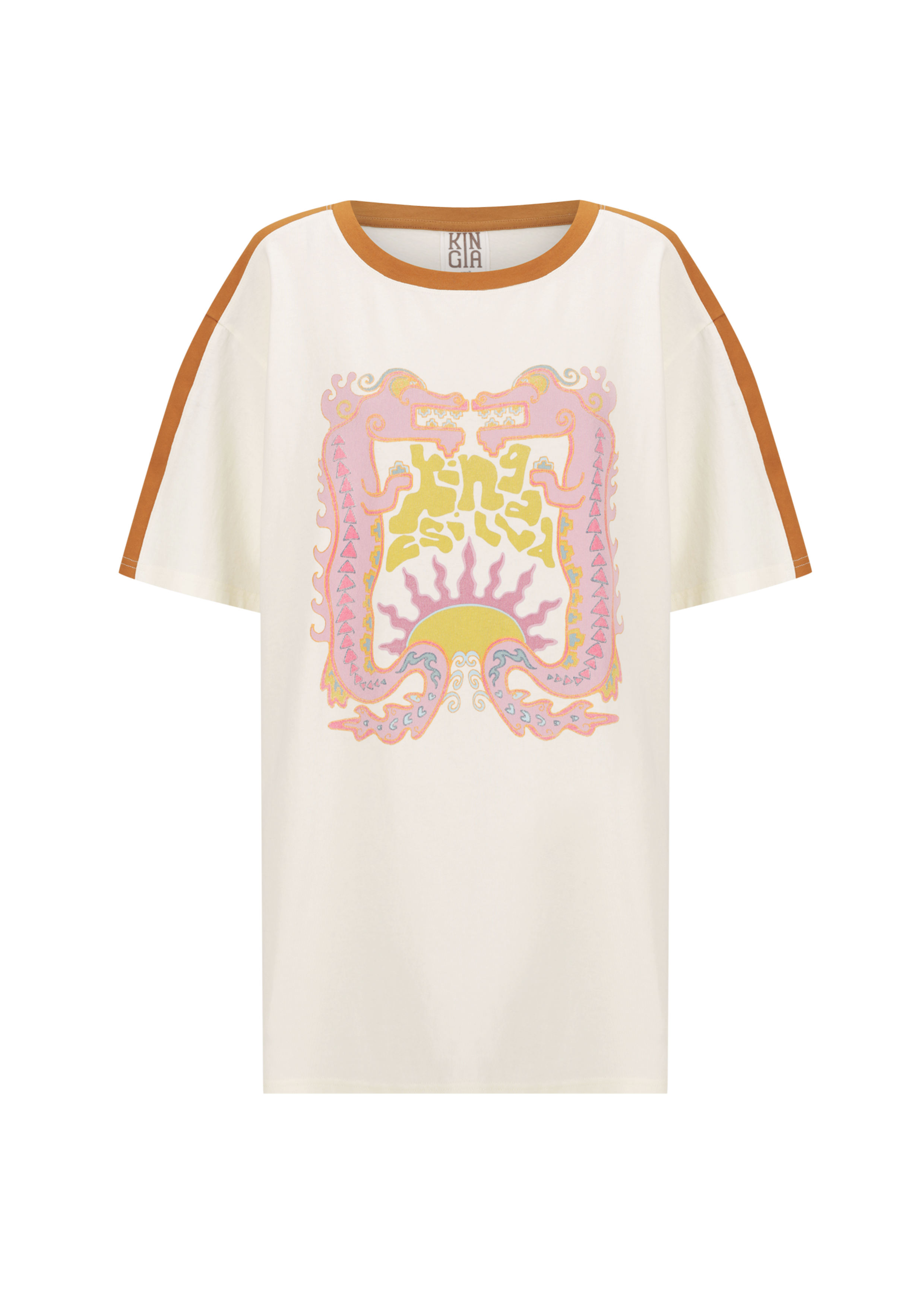 The Azure Dragon Tee by Kinga Csilla is a team favourite and here's why. Featuring a contrasting neckline and abstract dragon graphic, Kinga Tees are soft to the touch with a vintage wash treatment. Designed to feel lived-in from the first wear, this oversized t-shirt is something you'll reach for again and again. Being an oversized tee style we suggest taking your standard size or sizing down for a slouchy, off-duty fit.