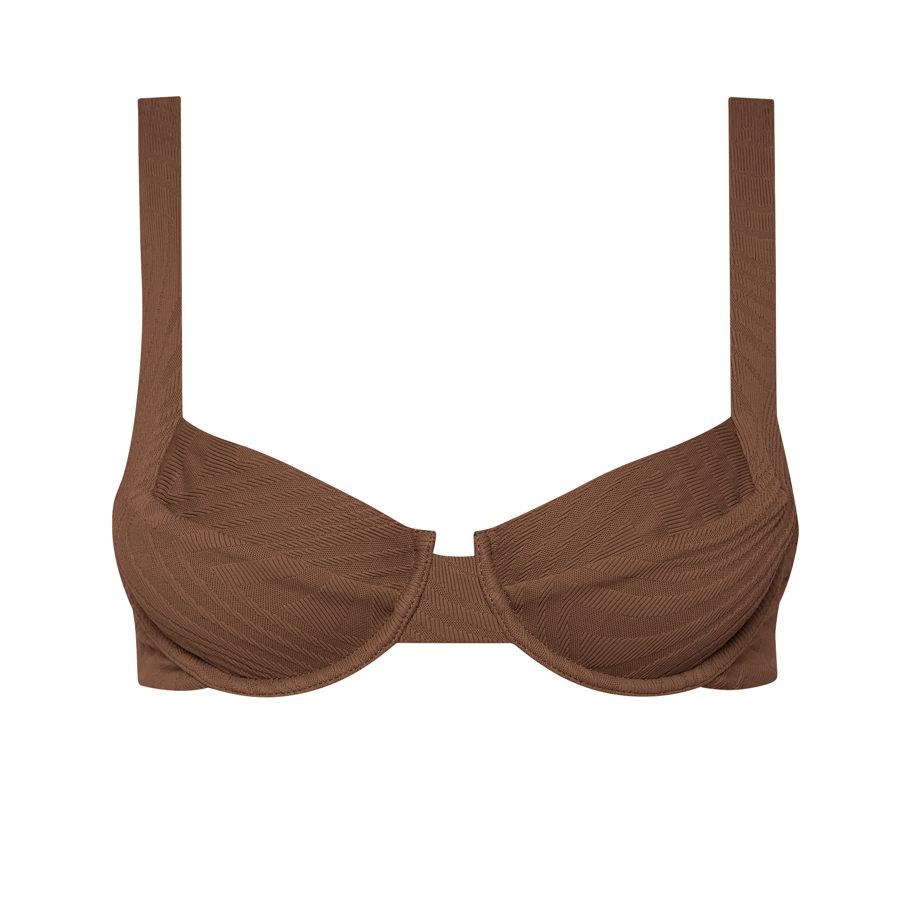 The Casanova Top in Pinecone by FELLA is an underwired bra style bikini top designed for supportive lift and shape.
