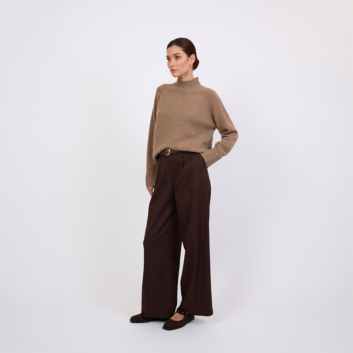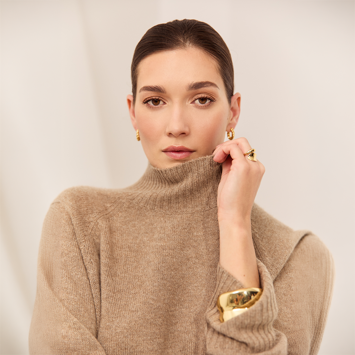 A softly structured funnel neck in pure cashmere, offering warmth with a refined, oversized silhouette.