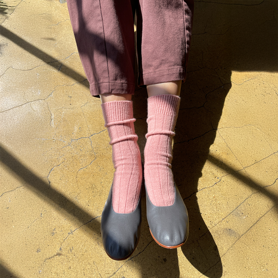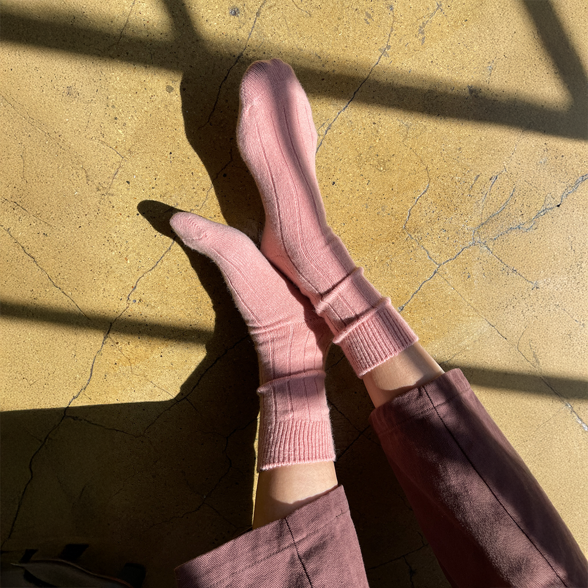 Cashmere Socks in Rose Petal by Le Bon Shoppe are a soft, elevated essential made for comfort. Crafted with a plush cashmere blend, they offer gentle warmth with a lightweight feel, perfect for everyday wear or gifting. The classic crew height and minimal silhouette make them an effortless addition to any wardrobe.