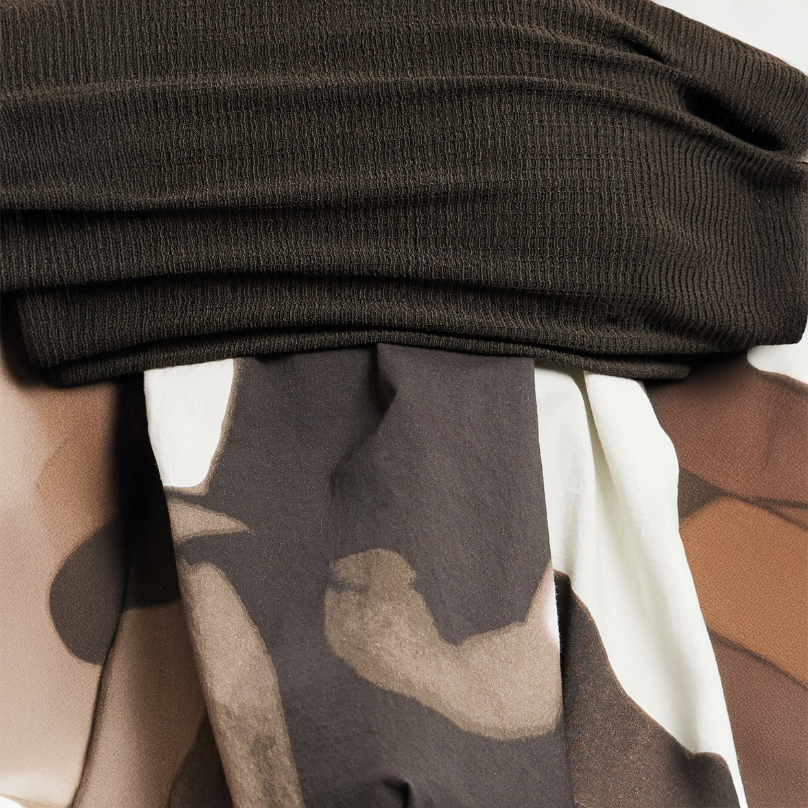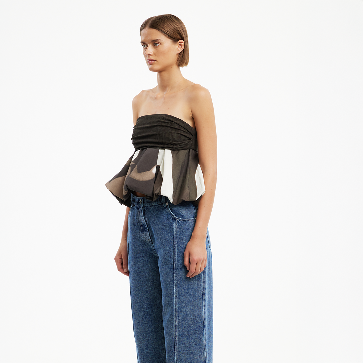 The Charley Top in Espresso Orchid by Significant Other offers sculptural femininity with modern ease. Fitted in the ribbed jersey upper and swelling into a printed puff hem, the bubble silhouette is anchored with a hidden side zip for seamless dressing.