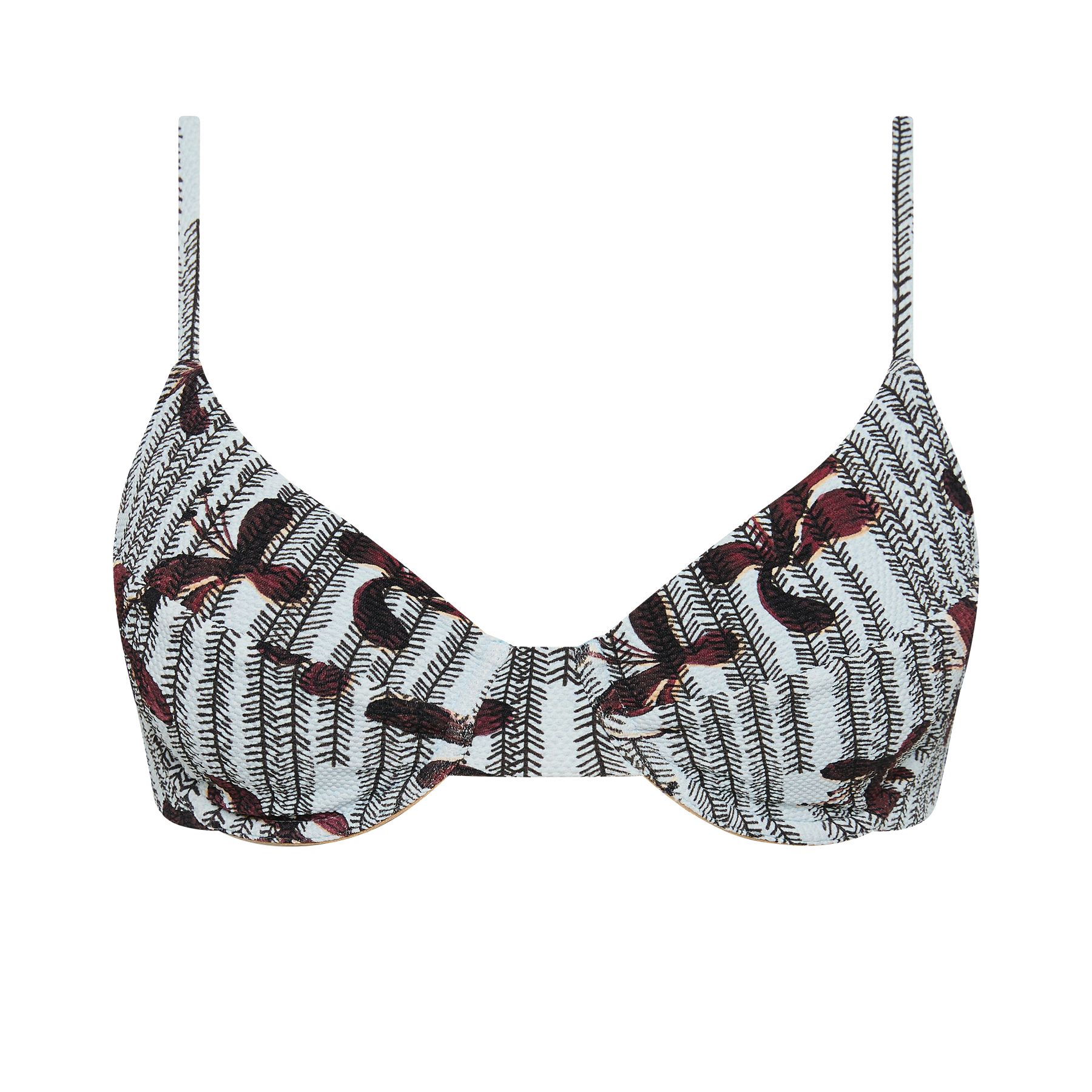 The Gareth Top in this season's Kimono Floral print by FELLA is a contoured underwire bikini top with adjustable straps and secure back clasp.