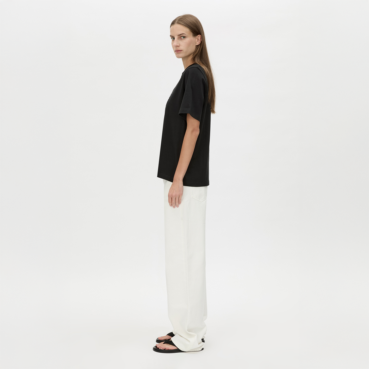 The Karine Graphic Tee in black by Camilla & Marc is a boxy, slightly oversized cotton tee in black, defined by its statement graphic print and relaxed build. It’s designed to anchor a more casual, street-inflected outfit while retaining a refined finish typical of the label’s minimal aesthetic.