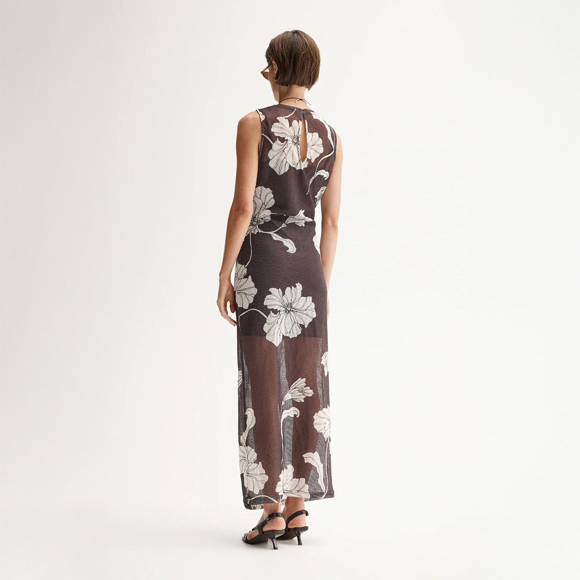 The Lilian Maxi Dress by Elka Collective is a semi sheer knit style with an exclusive floral print. Cut to a maxi length and finished with a removable slip for easy coverage and a back keyhole for a clean finish.