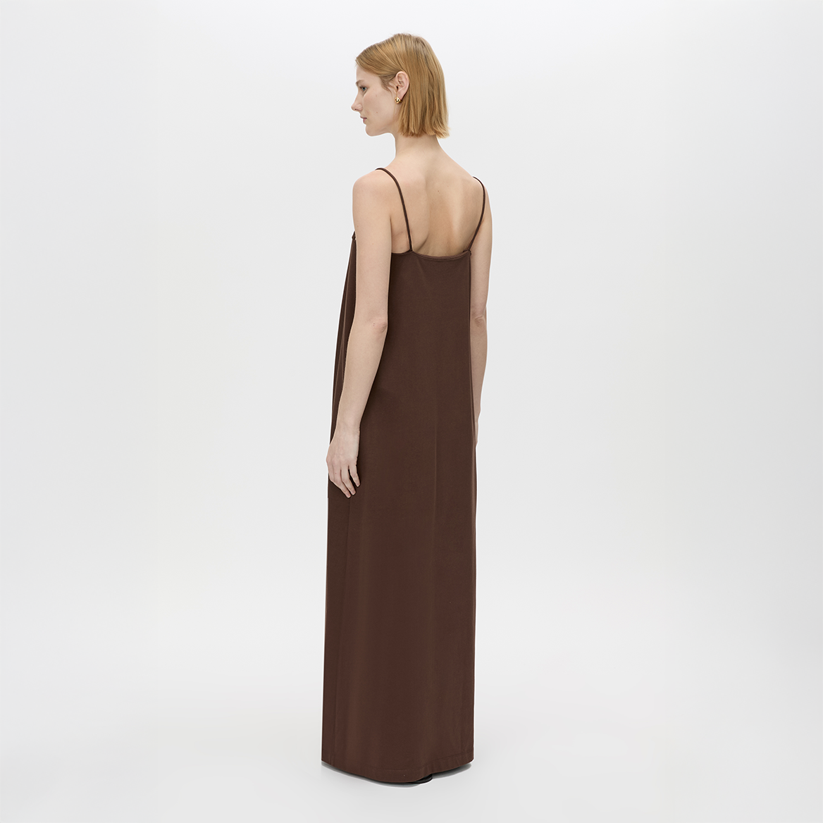 Designed with a relaxed A-line silhouette, this dress offers graceful drape and movement. Take your usual size for a sleek fit or size up for a looser, more fluid look.