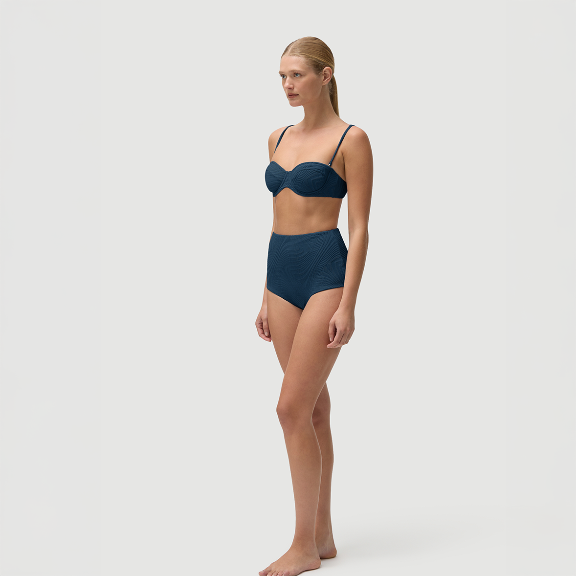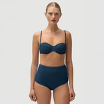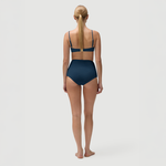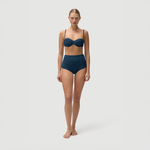 The Marco Bottom in Poseidon by FELLA is a classic high waisted bikini bottom that contours the hips, stomach and waistline.