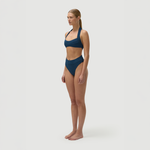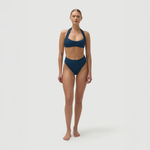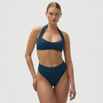 The Mikey Top in Poseidon by FELLA is a halter bikini top with a long back tie and easy medium coverage.