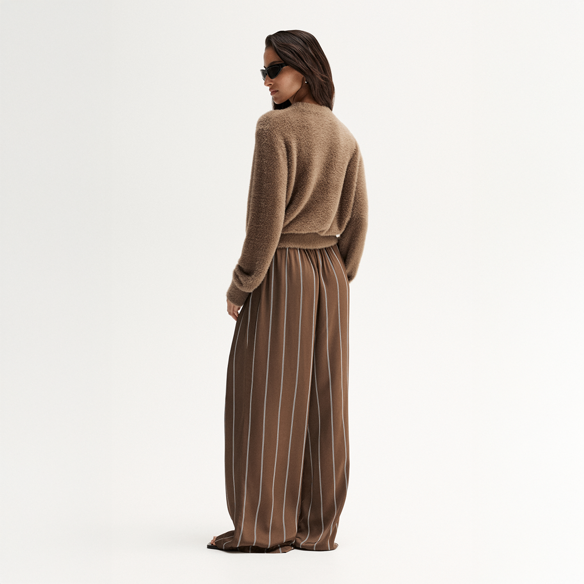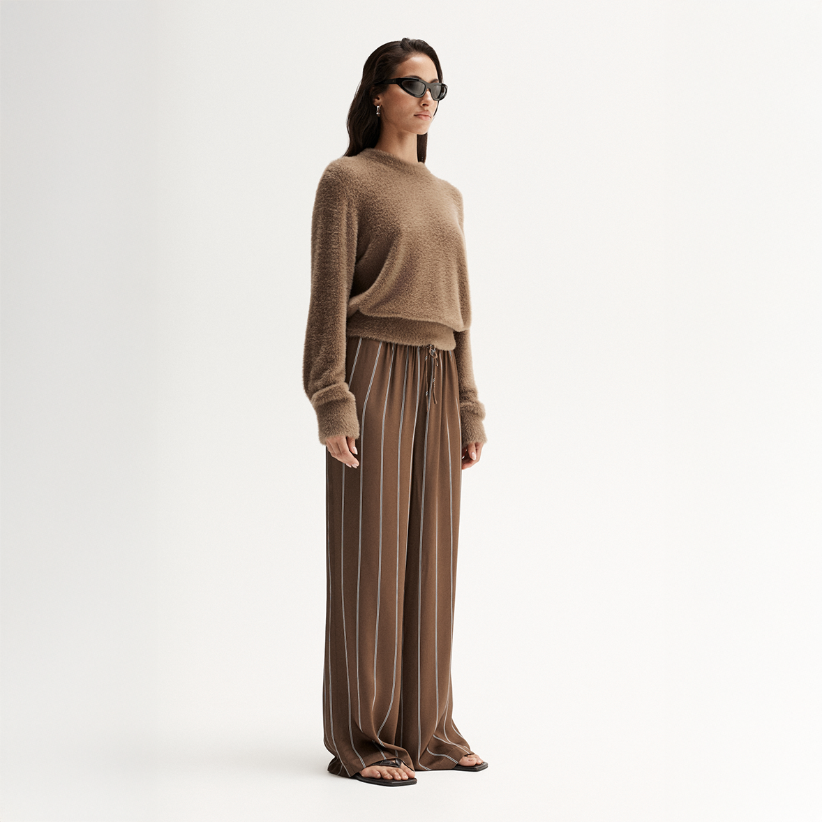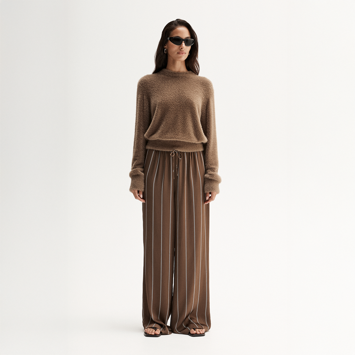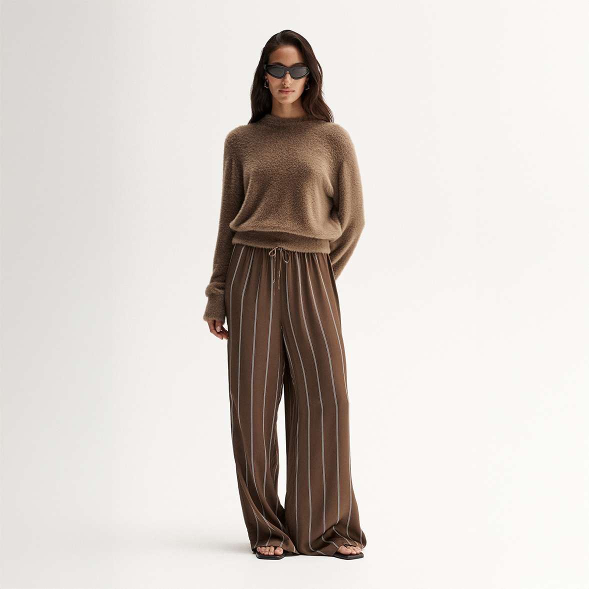 - Style with fluid pants and minimal accessories for a tonal, refined look.