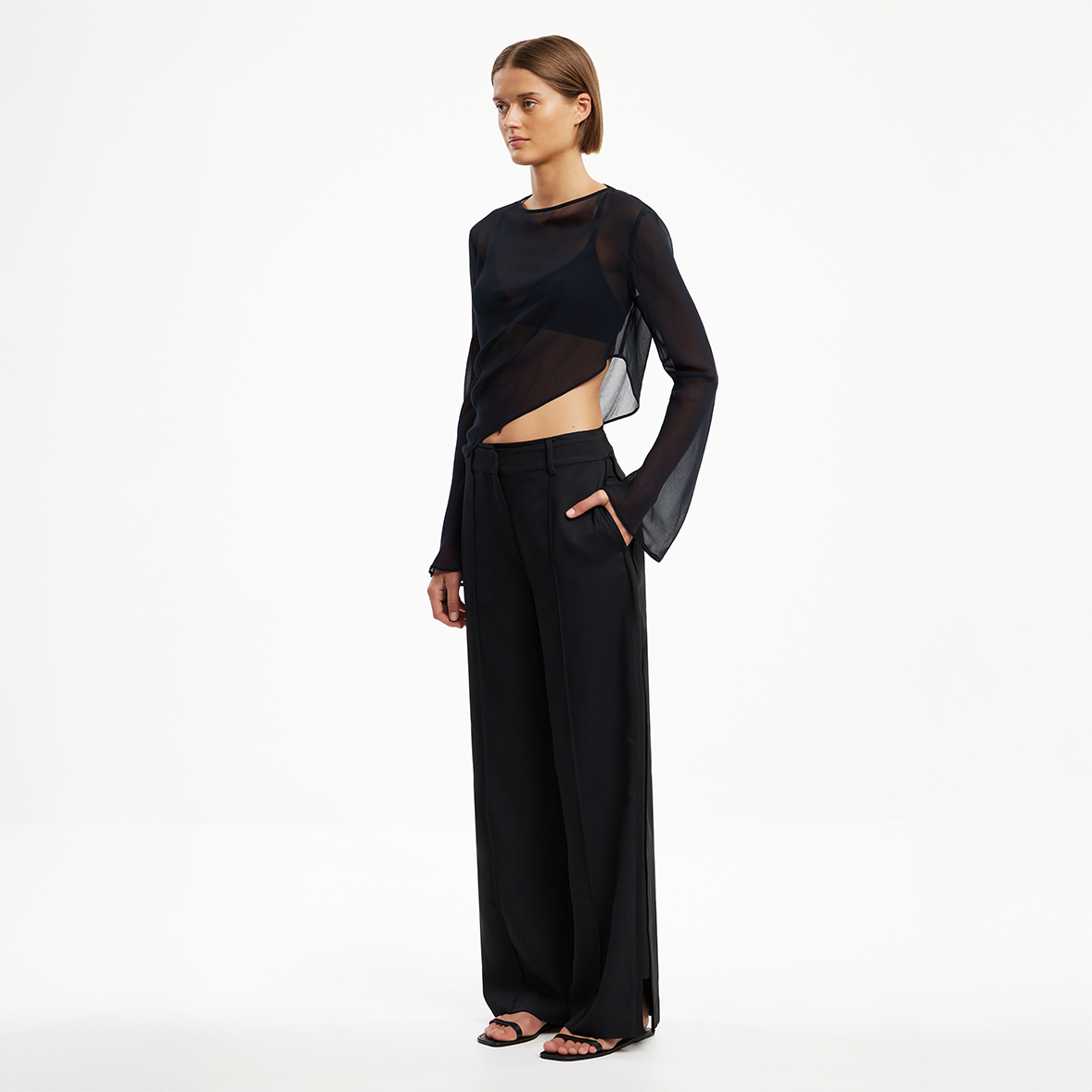 - Mid-rise tailored trousers